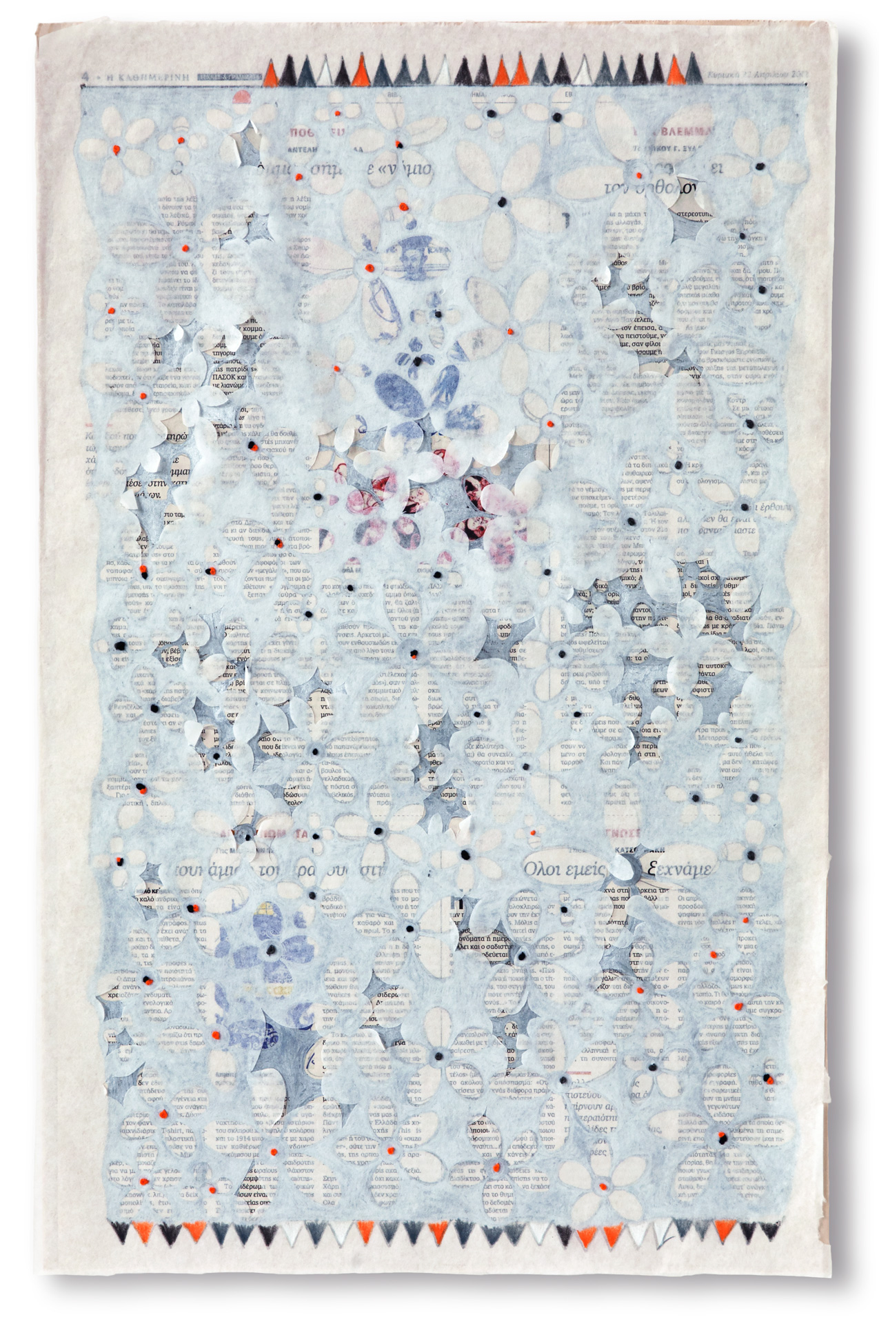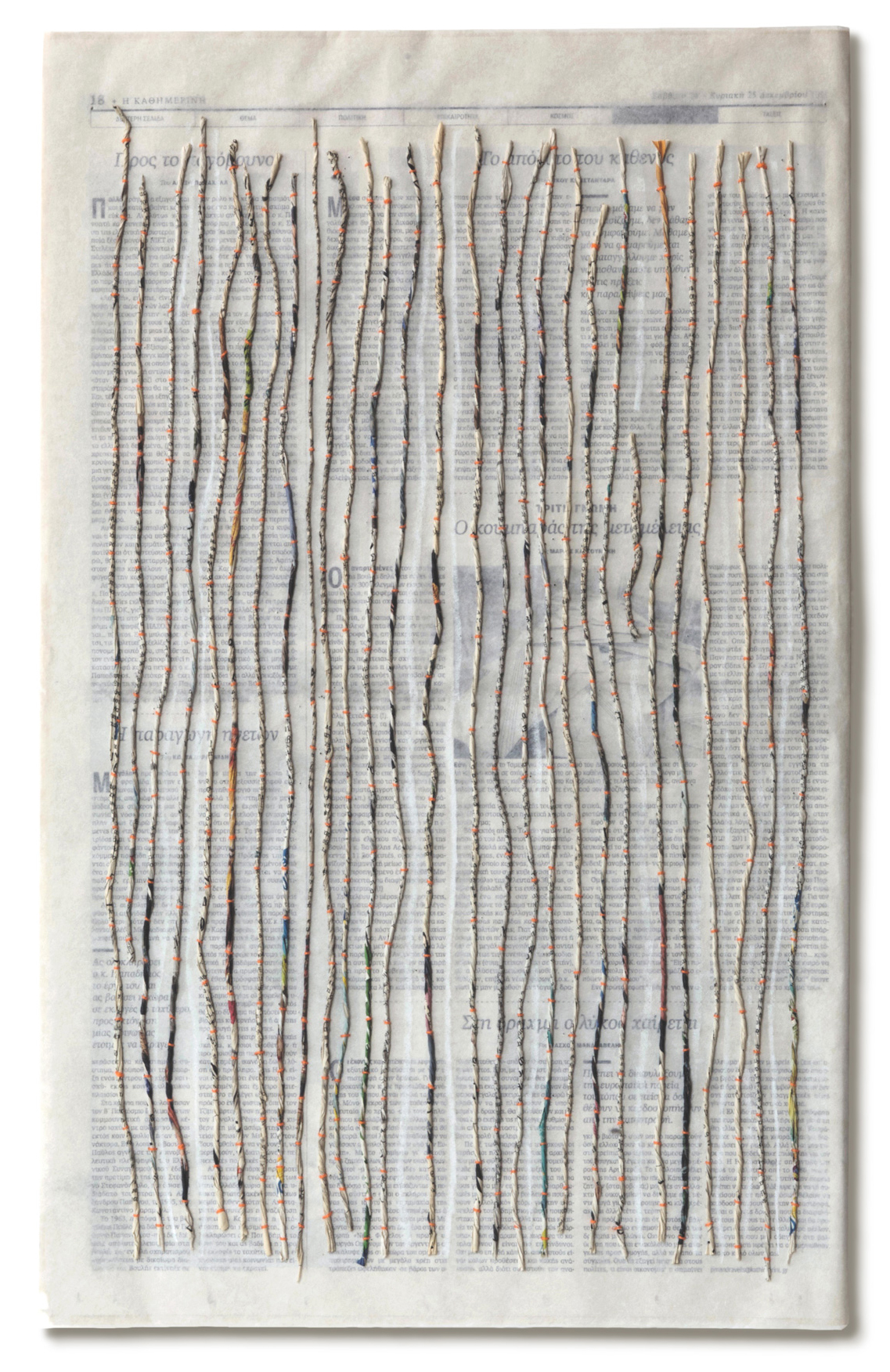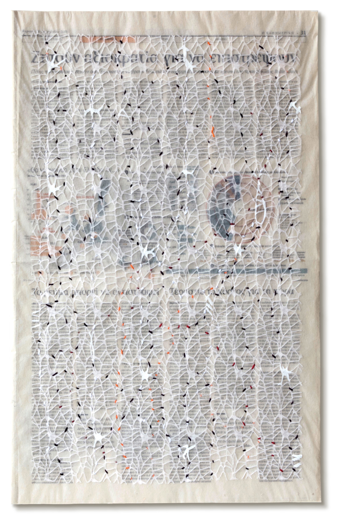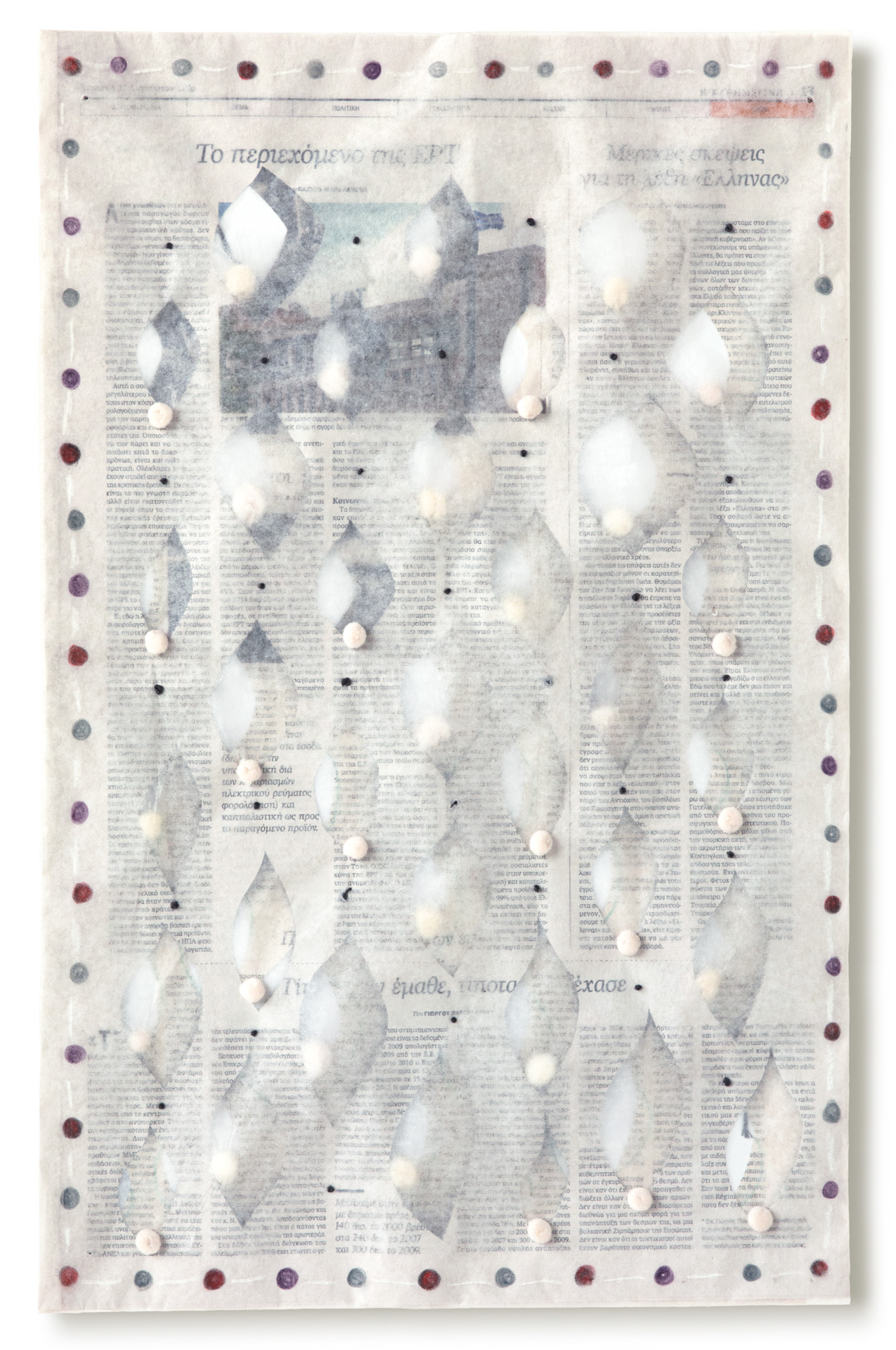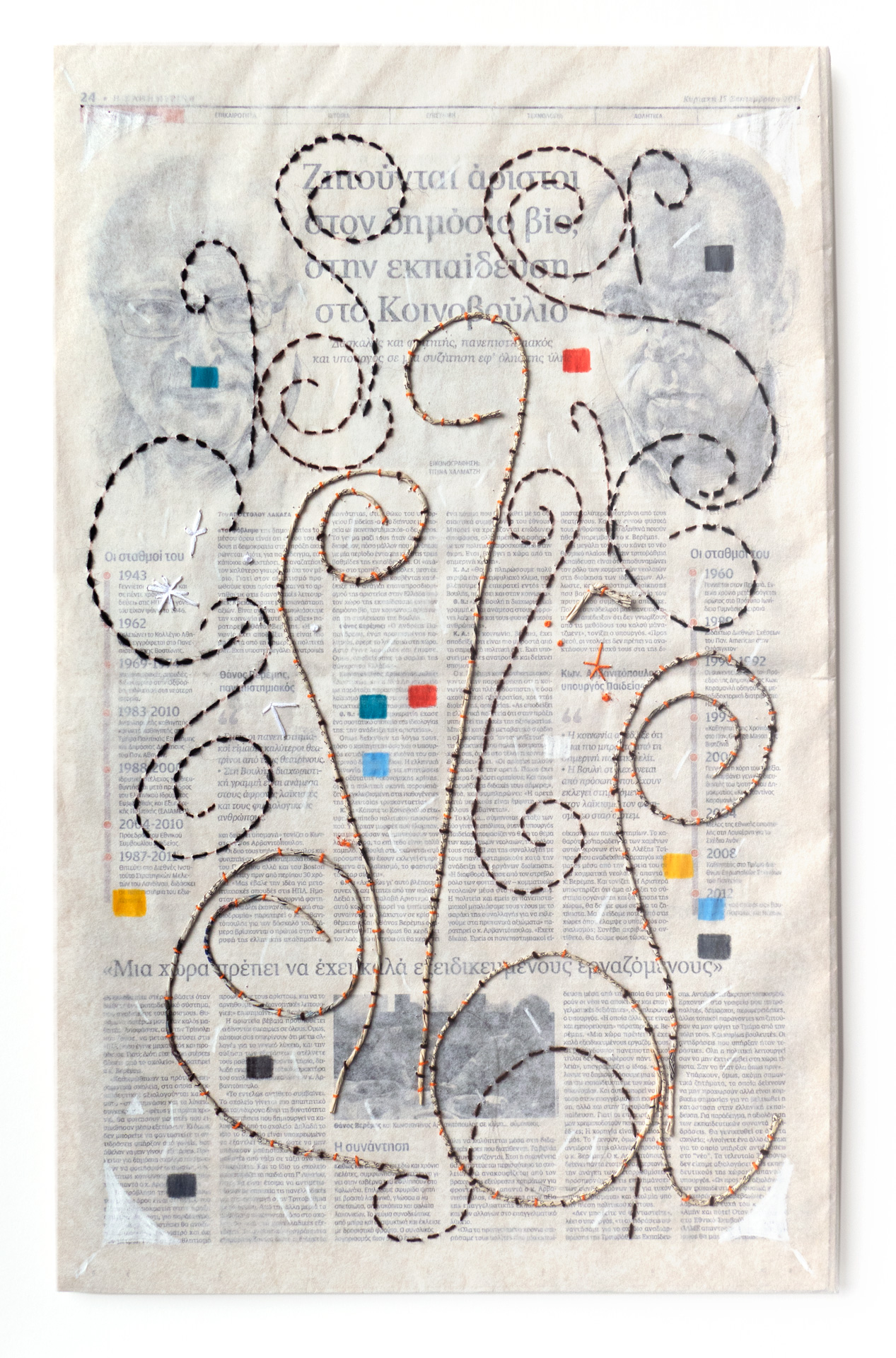 Editions of the Greek newspaper I Kathimerini (2009 - present) have been embroidered with patterns inspired by traditional Greek textile in an attempt to bring some antidot to the overwhelming problematic daily news with fragments of civilization.