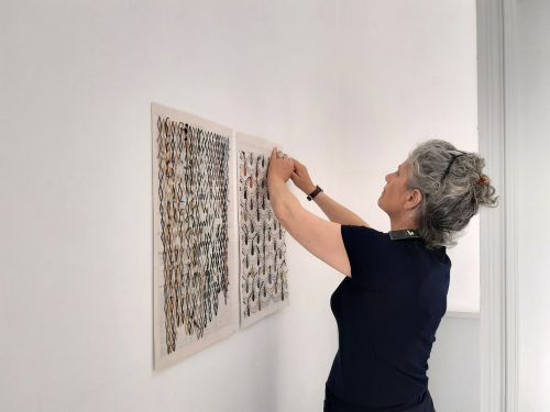 In his wonderful biographical sketch of Shostakovich, Julian Barnes writes, 'Art is the whisper of history, heard above the noise of time.' I could not describe Maria’s work with any greater accuracy. It is not the grand gesture of installations, fist-thick paint on copious square metres of canvas or ‘in your face’ socio-political critique. Even in her commissioned monumental work, such as the 'Meeting Tiles' in Zevenaar (2001), she avoids the grand gesture and seeks compassion for the world in the precision of her visual power. Or the intervention at the Athens art fair in 2010: a series of vegetables and herbs in pots on the steps of the building, with the title of the work cut out above it as a garland: Growing Hope - in my opinion the main driver of her artistic practice. Whispered hope that will only grow stronger and more beautiful through the patina of time.